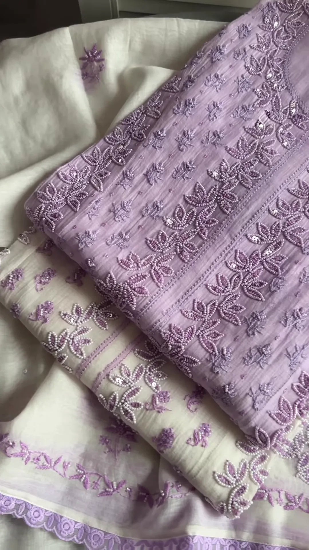 A premium organza unstitched set beautifully enhanced with intricate embroidery, perfect for creating a custom ethnic outfit.